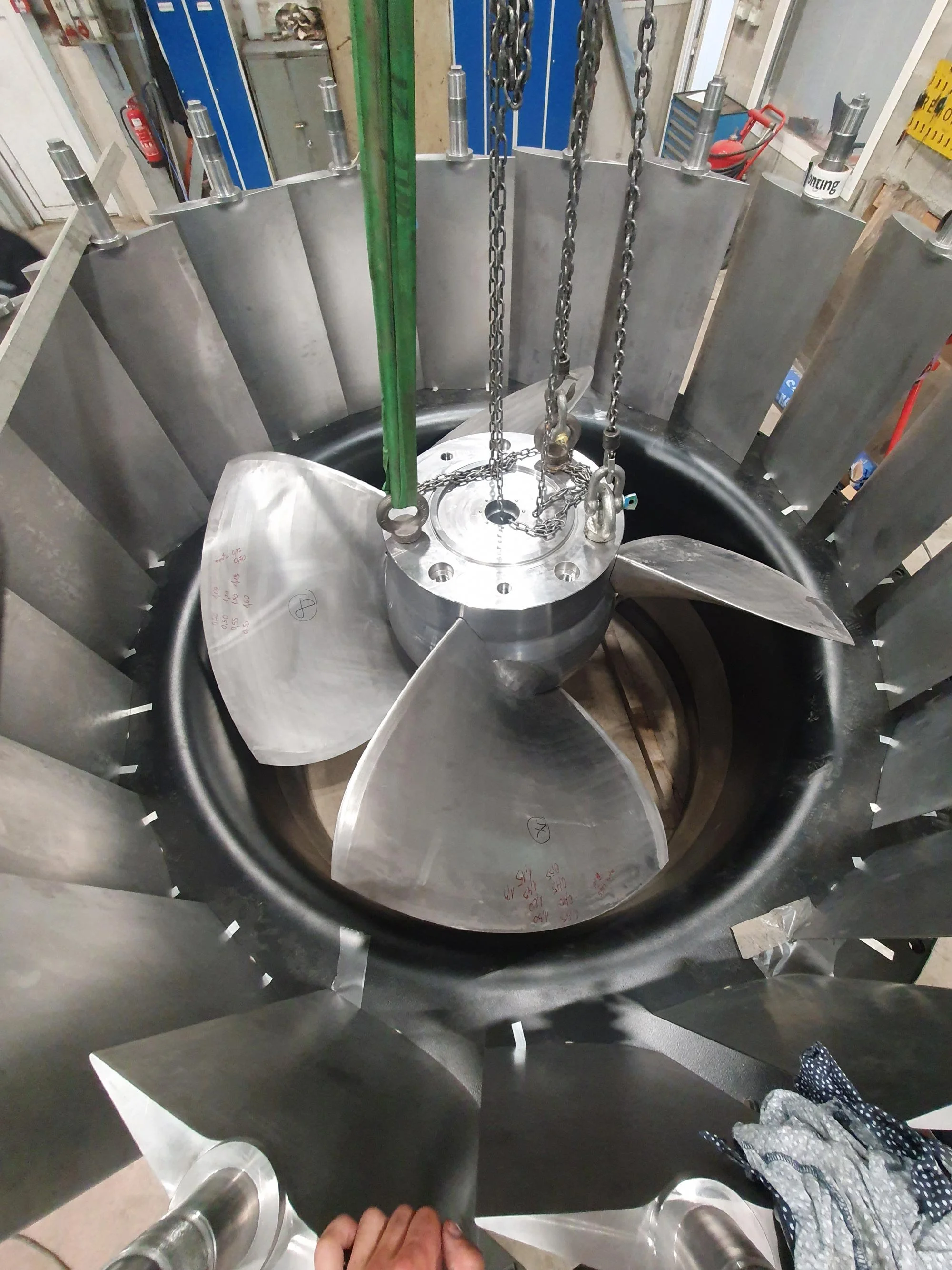 Dobbelregulerte Kaplan turbiner sikrer fleksibel i drift og er ideelle for kraftverk med store sesongvariasjoner i vannføring. Ved produksjon er presis hydraulisk utforming, riktig materialvalg og nøyaktig samspill mellom blader og ledeskovler avgjørende for driftssikkerhet, effektivitet og lang levetid.