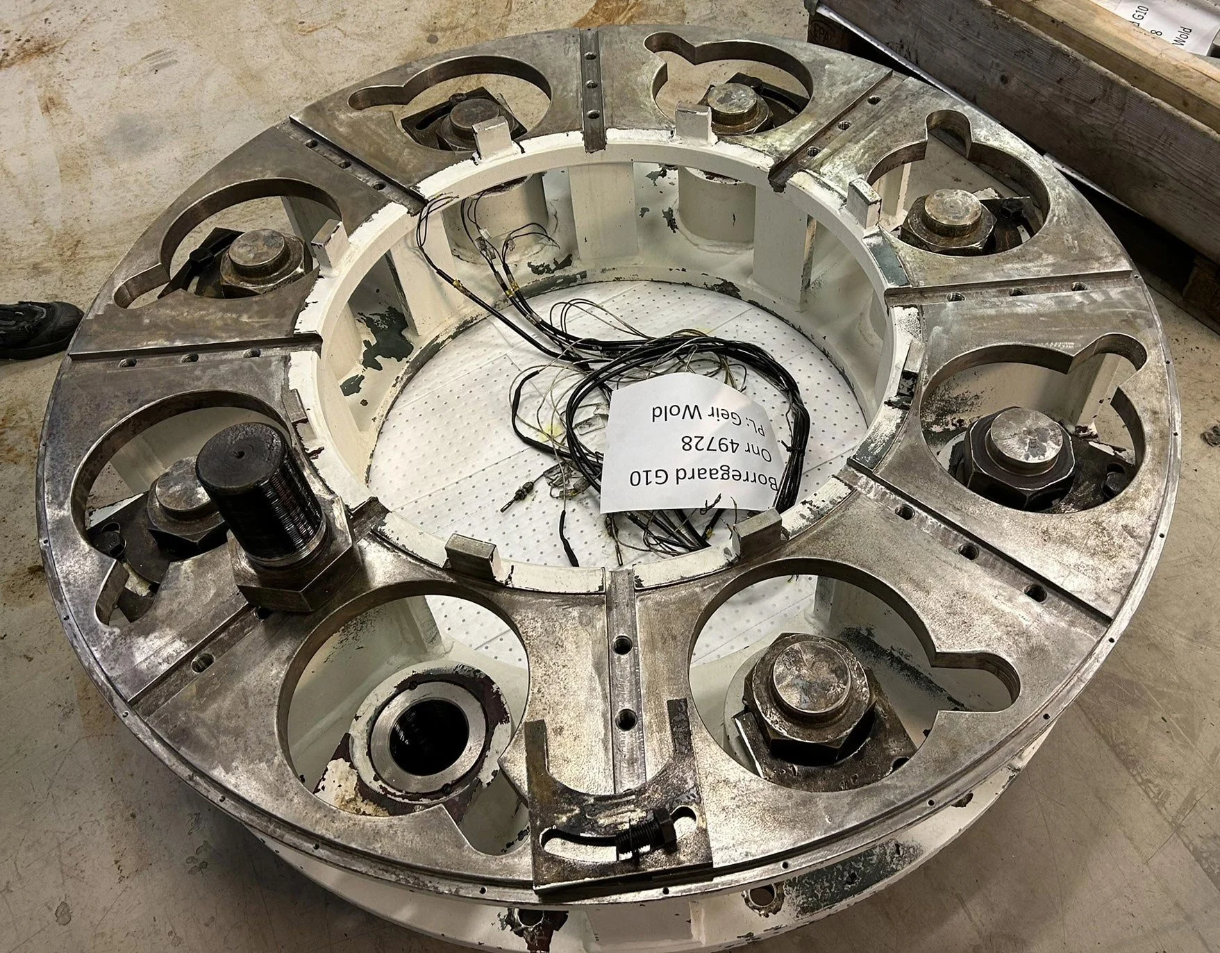 Deksler over øvre kryss ble demontert slik at man kunne få nødvendig tilgang til en nøyere inspeksjon av øvre generatorkryss. Det ble da konstatert at av øvre kryss hadde store sveisesprekker i øvre del av alle 8 stk. forsterkningsribber lokalisert rett under bærelageret.